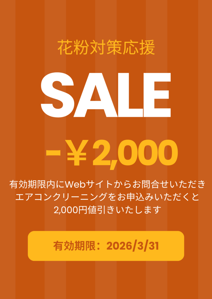 そこで glowworks では、花粉シーズン応援として、期間限定で エアコンクリーニングを 2,000円引きでご案内します。